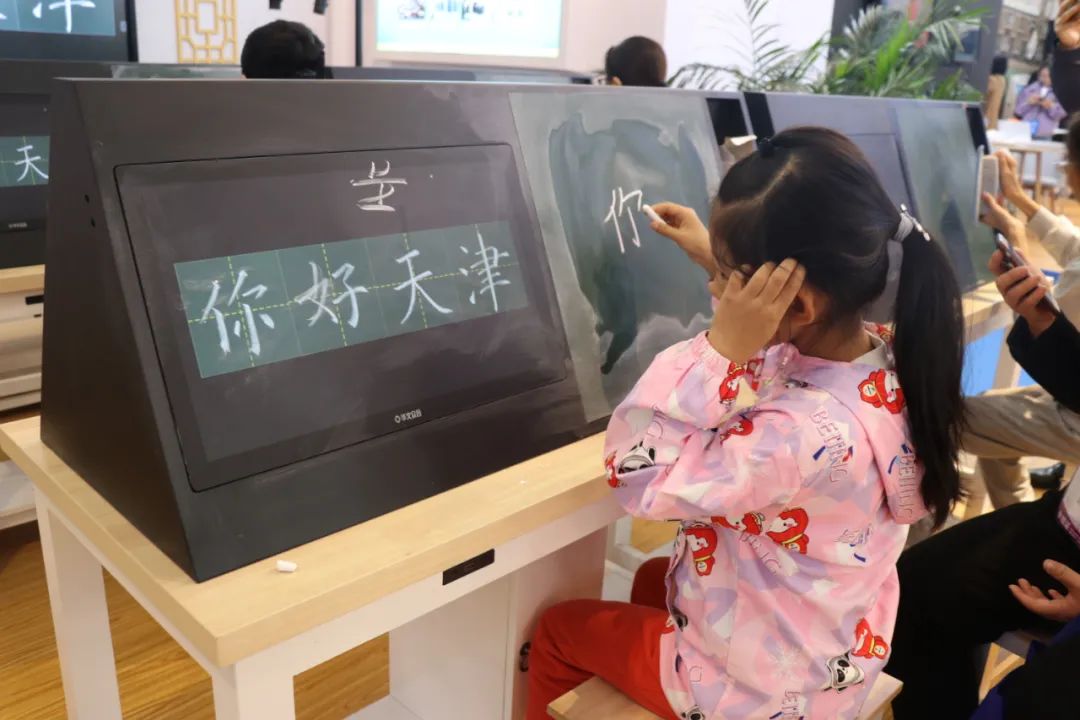 天津市東麗區職業教育中心學校的學生們在華文眾合第8代智慧書法教室中上了一堂科技感十足的書法課。