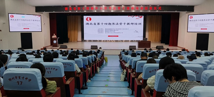 2024年8月14日至19日,由湖北省教育學會書法教育專業委員會主辦,鄂州市鄂城區教育局承辦,鄂州市育才中學協辦,北京華文眾合科技有限公司支持的湖北省第十四期中小學書法骨干教師培訓在湖北鄂州舉辦。開幕當天,共有300名來自湖北省各中小學的骨干書法教師及對書法有興趣的其他學科教師參加了開幕儀式。