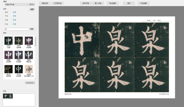 (9)排版好的字帖可以保存為模板,下次上課時點擊載入字帖,可直接進行練習;