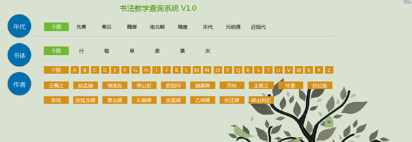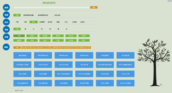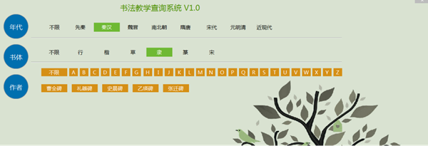 (1)選擇“碑帖”欄目,可以看到有年代、書體、作者等選項;