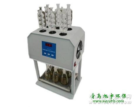產品詳細介紹青島旭宇DL-801C型標準COD消解器一、產品介紹: 國家標準GB11914-89分析方法規范地制定了水質化學需氧量COD(cr)的測定步驟,嚴格地規定了方法的加熱消解時間、溶液酸度、氧化劑的用量等條件指標。顯而易見,水質COD(cr)的測定是有嚴格的條件規定,違背了條件規定進行操作,就會影響測定的準確性。 旭宇DL-801C型標準COD消解器遵循了國際標準(ISO)和國家標準(GB)的基本原則,保證了回流加熱微沸2小時的消解操作,試劑溶液的配制和加入量都和GB法一致,確�?煽烤_的分析結果。 旭宇DL-801C型標準COD消解器采用微機技術進行定時控制加熱電爐,可對5個(定做)、6個(標配)、10個(定做)消解錐形回流裝置同時進行加熱。達到節能、減低電力負荷、節水、提高效率的目的。 旭宇DL-801C型標準COD消解器采用玻璃毛刺回流管代替球形回流管,并以風冷技術取代自來水冷卻方式,既可節水又能使儀器規范化,同時還提高了儀器使用的安全性。 儀器的化學溶液配制、操作和COD值的計算完全遵照GB11914-89,COD值低于50mg/L的水樣可通過稀釋滴定劑和氧化劑來提高精確度, 高于1000mg/L的COD水樣,可以通過水樣的比例稀釋來完成測定。 二、技術特點: 1、表面耐腐、保溫型 2、無需倒入其他瓶中,三角燒杯加熱后可直接測量,方便使用 3、節能、降低電力負荷、提高效率 4、加熱均勻、使用壽命長 5、帶刺回流管、冷卻效果好 6、具有風冷功能、經濟實用 三、性能參數: 1、測量范圍:0-1000mg/L、0-10000mg/L(水樣稀釋) 2、溫度范圍:32-399℃ 3、設定時間:0-999分鐘任意設定 4、測量時間:不大于2h 5、測量誤差:鄰苯二甲酸氫鉀標準溶液(500mg/L)、 6、相對標準偏不大于5.0%工業有機廢水(500mg/L)、相對標準偏不大于8.0% 7、環境溫度:5-40℃ 8、加熱功率:1300W(AC 220±22V,50HZ) 9、消解樣品:6個(標準)5個、10個樣品(定做)