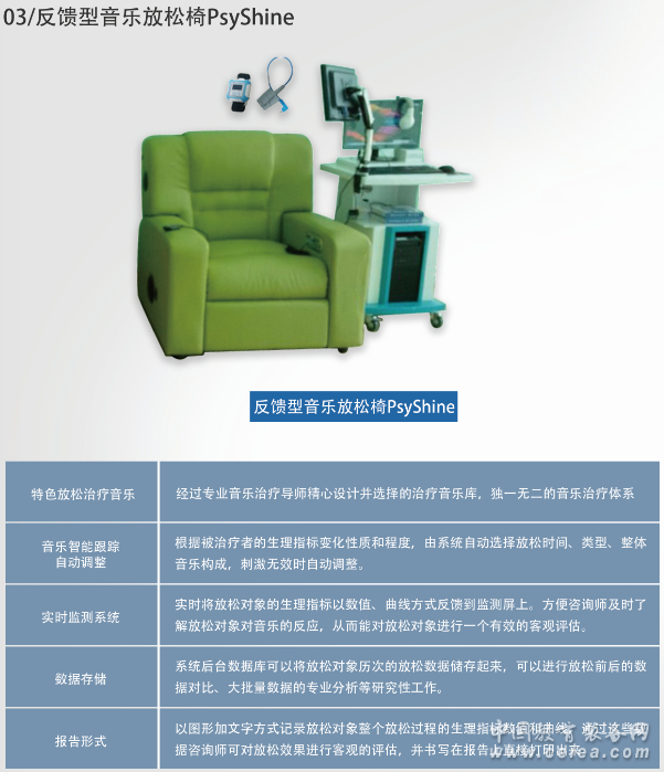 產品詳細介紹電動控制沙發 人體工學設計,更加放松舒適,內置超靜音電機,通過遙控器控制放松椅升降角度。角度調節范圍:靠背100度-180度,腿部90度-180度; 體感震動系統 可伴隨音樂起伏律動,進行全身按摩,刺激大腦; 內置高保真音箱 內嵌高保真品牌2.1聲道音響系統一套,3.5mm立體聲耳機插頭(可外接電腦音樂),并具有USB接口(讀卡器)直接插播mp3等擴展高級功能 發帶 信號采樣率 512Hz 腦波數據監測及記錄 能夠實時、動態監測和記錄專注度、放松度及δ、θ、α、β、γ頻段8個EEG參數。δ、θ、α、β、γ頻段8個EEG參數,數據輸出頻率為1Hz�!皩W⒍� (attention) ”和“放松度 (meditation) ”參數,數據輸出頻率為1Hz,可提供至少八種自定義事件標記 注意力測評及訓練 至少9種注意力訓練方法, 所有訓練數據均自動記錄和分析 支持反饋控制訓練,可通過專注度、放松度反饋控制音樂音量及圖像變化效果 心理放松訓練音樂 α波音樂、專業音樂、積極音樂、催眠音樂、純音樂、放松音樂、減壓音樂7大類音樂;不少于100首; 統計分析功能 可對訓練記錄數據進行統計分析,用曲線圖、柱狀圖、餅圖等圖表形式顯示分析結果,給予訓練效果評價,并自動生成報告,訓練評價報告采用Word格式 可生成所有用戶的訓練報告 支持多用戶信息及訓練記錄的管理。管理員可以對所有用戶及其訓練數據進行統一管理,可查看所有用戶的訓練記錄并生成訓練報告,可進行訓練記錄的檢索和條件過濾,檢索結果可導出為標準格式數據文件,該數據文件可供Excel、SPSS等第三方數據分析軟件進行數據處理和分析 心理放松圖片和視頻 放松圖片不少于300張,放松視頻不少于50個。 |