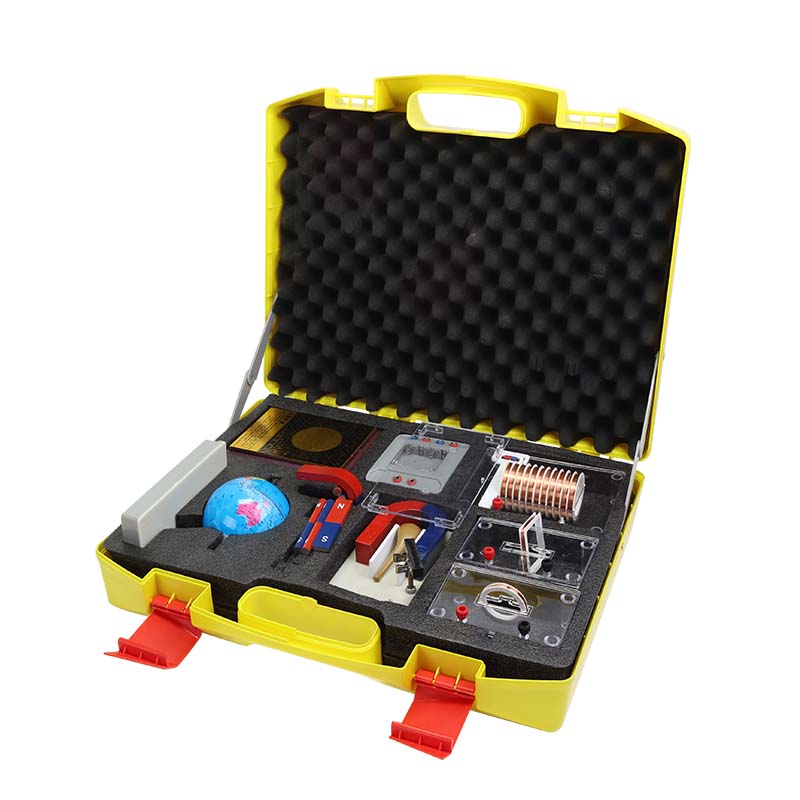蹄形磁鐵、條形磁鐵、通電螺線管、電流磁場演示器、安培力演示導軌、導線框、直流電源、磁感線模擬板、洛倫茲力演示器、小磁針、鐵屑、絕緣支架等。
