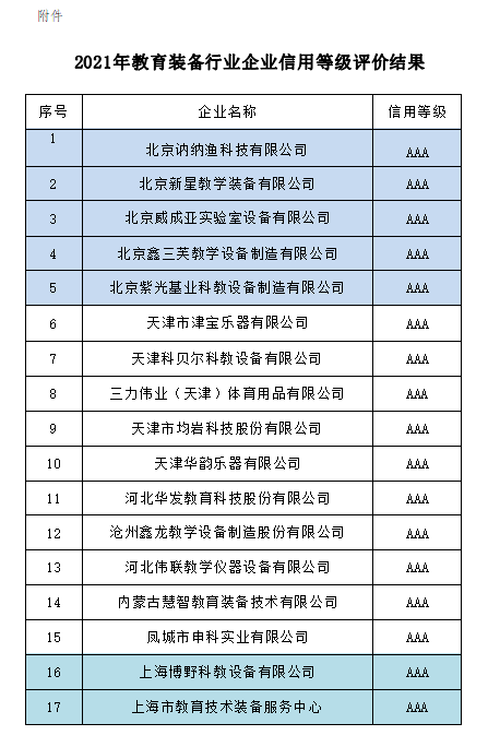 2021年教育裝備行業(yè)企業(yè)信用等級評價結(jié)果