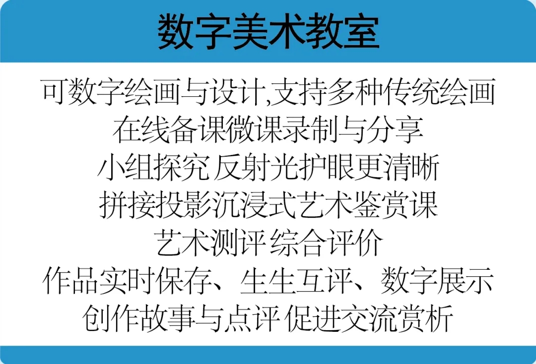 擁有自主開發的系列產品,涉及中國傳統文化書畫教室、老師成長和提升的教研產品、增賦減負備授課工具、提升優質資源均衡的結對課堂。自主研發產品:課堂評價-愛評課、美術教絡系統-藝學寶、數字臨摹書法教室-藝學寶、互動結對課堂、名師專遞課堂。配套硬件產品:藝板繪畫屏、藝學寶書法臨摹全貼合屏,產品優勢:數據采集與運用、互聯網+等創新運用在教學和教研,助力英音美薄弱學科的師資水平提升和名師課堂發揮普惠作用。
