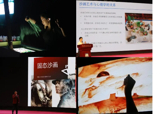 會上,北京沙畫協(xié)會韓君會長與中國民協(xié)沙畫藝術(shù)委員會李韜副主任使用由北京龍美訥納漁科技有限公司提供的智慧沙畫桌,現(xiàn)場為師生帶來了精彩的沙畫表演《國粹》與《一帶一路》,兩位藝術(shù)家的精湛技藝與深厚的藝術(shù)底蘊(yùn),贏得了現(xiàn)場師生的熱烈掌聲與高度贊譽(yù)。李海燕、李韜分別做了“沙畫與藝術(shù)療愈”和“中國沙畫傳播與應(yīng)用”的講座。