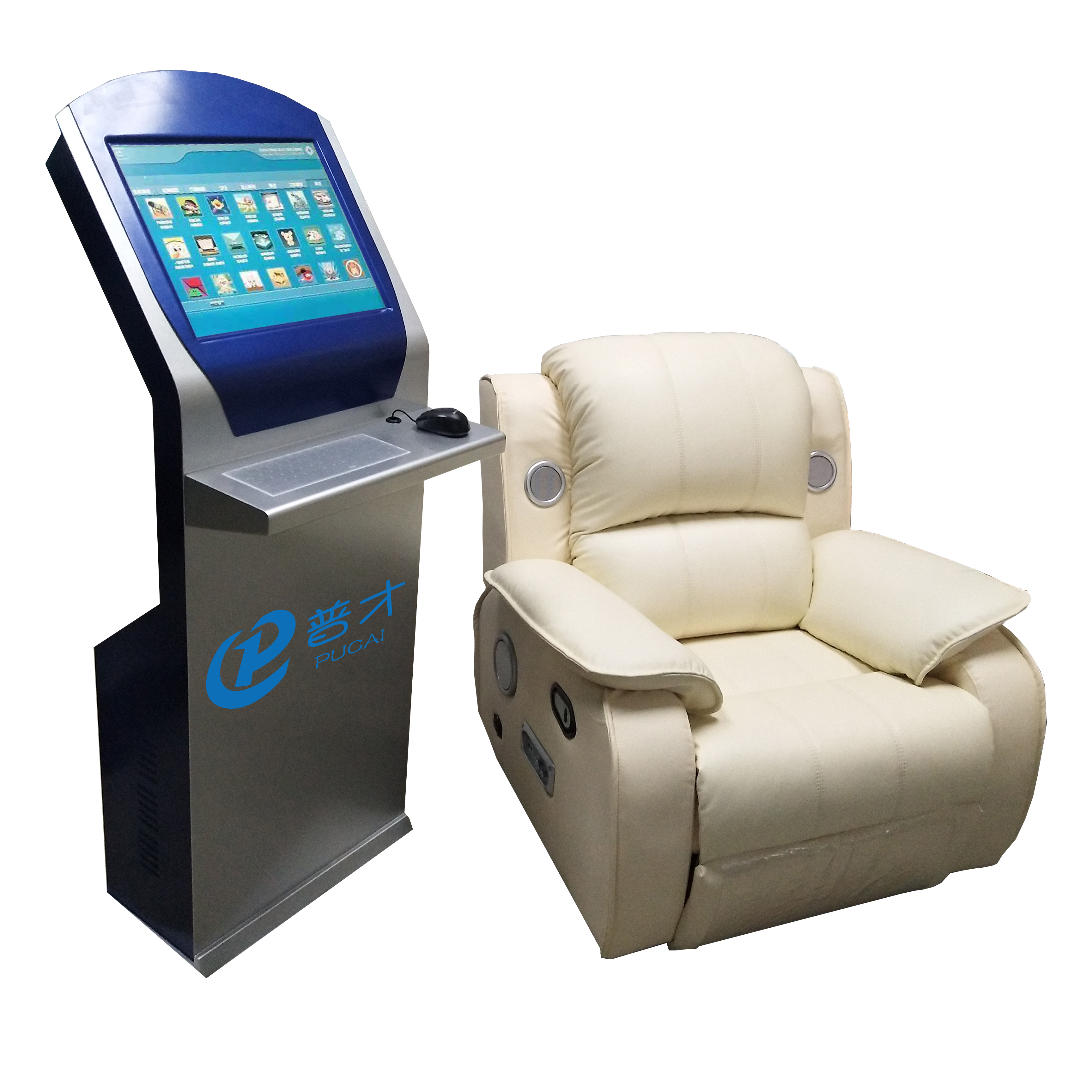 產品詳細介紹軟件參數: 能夠實時、動態監測和記錄專注度、放松度及δ、θ、α、β、γ頻段8個EEG參數。δ、θ、α、β、γ頻段8個EEG參數,數據輸出頻率為1Hz。“專注度 (attention) ”和“放松度 (meditation) ”參數,數據輸出頻率為1Hz,可提供至少八種自定義事件標記 注意力、放松度測評及訓練 提供至少9種注意力訓練方法 提供音樂放松訓練功能。支持多級音樂媒體目錄管理,音樂文件的導入,播放列表。 所有的注意力訓練及放松訓練均需要進行自動數據記錄和分析 支持反饋控制訓練,可通過專注度、放松度反饋控制音樂音量及圖像變化效果 具備統計分析功能 可對訓練記錄數據進行統計分析,用曲線圖、柱狀圖、餅圖等圖表形式顯示分析結果,給予訓練效果評價,并自動生成報告,訓練評價報告采用Word格式。支持多用戶管理,管理員可對訓練記錄進行統一管理,可生成所有用戶的訓練報告。 硬件參數: 1.機柜外觀:總高度146cm,寬度52cm。全鋼材料、高檔烤漆、防銹、防水、防腐蝕、耐磨、防磁、 防靜電。 2.觸摸屏:19寸紅外觸摸屏,電阻壓力觸屏表面硬度3H;耐久力點擊超過 1 百萬次; 3.主控模塊:控制面板、01開關、ATX開關、RJ45標準網絡接口等。 4.揚聲器:多媒體立體聲、雙聲道、防磁音響。 5.電源模塊:雙路供電,雙路在線電源,主機模塊與功能模塊獨立供電。 (1) 冷軋鋼板結構1.2-1.5mm;表面金屬烤漆;顏色可定制;50W功放音箱系統。帶100mm散熱風扇口一個;開關電源鎖;款式局部可更改;上中下及2側的蓋板均可拆起; 7、進口小牛皮電動音樂放松椅1臺 a.產品尺寸:長105CM×寬90CM×高100CM(椅背收起) 長160CM×寬105CM×高80CM(椅背展開) b.產品重量: 凈重:55KG;包裝重量65KG最大承載量:100KG, c. 電 源: 220V(50Hz) d.獨立電動控制系統:音樂椅靠背、腿部電動控制設計,靠背100度-180度,腿部90度-180度任意調節。 e,放松椅集成藍牙音樂播放器,支持SD卡、優盤、藍牙等放松播放音樂,靠背兩個3寸4Ω高音喇叭,座位右側一個4寸低音喇叭。 |