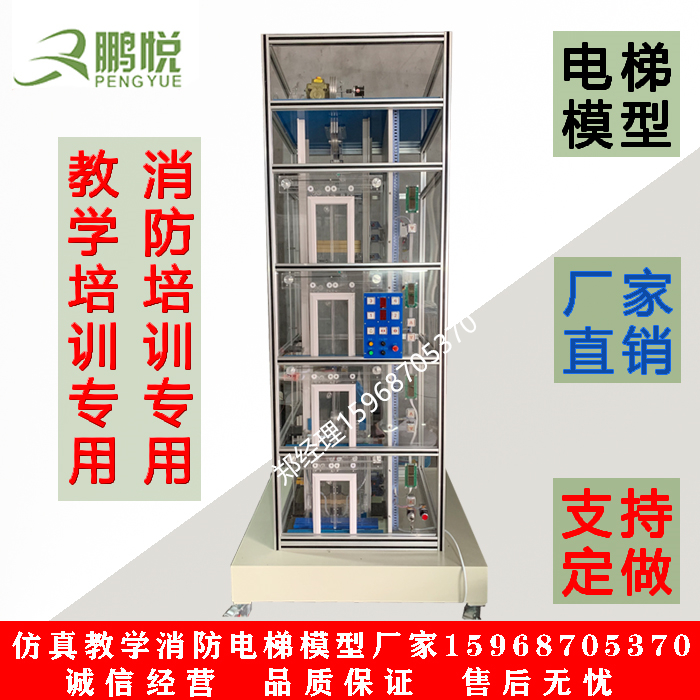 本電梯是根據(jù)最常見的升降式電梯結(jié)構(gòu),采用透明有機(jī)材料制成,其結(jié)構(gòu)與實(shí)際電梯完全相同,且?guī)缀蹙邆淞藢?shí)際電梯的所有功能。為了便于教學(xué),電梯大部分部件均是采用透明有機(jī)材料制成,使得電梯的內(nèi)部結(jié)構(gòu)一目了然;同時(shí),電梯的運(yùn)行過程,以及每個(gè)動(dòng)作都十分明了,且可以反復(fù)實(shí)際動(dòng)手操作。使學(xué)生能夠很直觀、透徹地了解、掌握電梯的結(jié)構(gòu)及其動(dòng)作原理,達(dá)到事半功倍的效果。解決了以往電梯教學(xué)中單純的理論教學(xué)方式或是參觀實(shí)際電梯時(shí)所帶來的不安全,無法全面了解其內(nèi)部結(jié)構(gòu)及運(yùn)行過程等種種實(shí)際問題。電梯的電氣控制系統(tǒng)采用可編程控制器(PLC)實(shí)現(xiàn)邏輯智能控制,交流變頻調(diào)速(VVVF)驅(qū)動(dòng),其硬件構(gòu)的組成及功能與實(shí)際電梯完全一樣。具有自動(dòng)平層、自動(dòng)開門關(guān)門、順向響應(yīng)轎廂內(nèi)外呼梯信號(hào)、直駛、電梯安全運(yùn)行保護(hù)以及電梯急停、慢上、慢下、照明、風(fēng)扇等功能。且具有性能可靠、運(yùn)行平穩(wěn)、操作簡(jiǎn)單、能耗低和便于教學(xué)等特點(diǎn)。