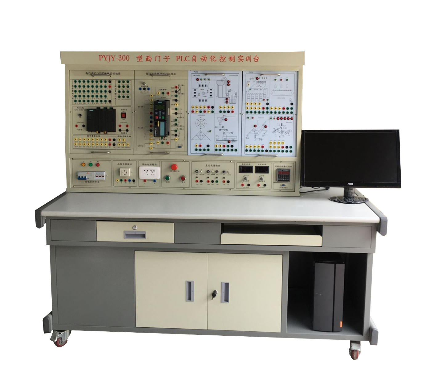 實訓裝置由控制屏、實訓桌、主機實訓組件、實訓模塊、三相鼠籠異步電機等組成。