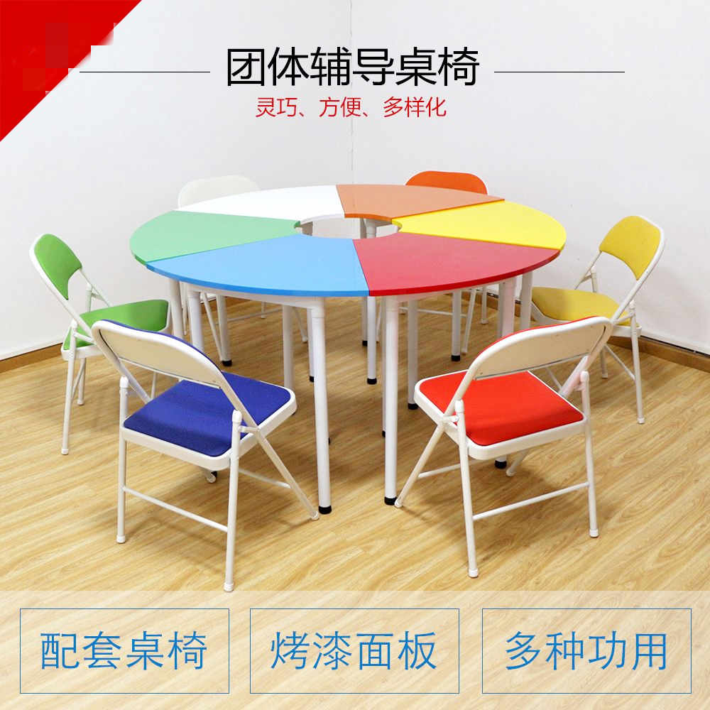 產品詳細介紹現在各行各業少不了就是團體活動,首先團體的目的也是為了員工能更好,更積極激情的投入到工作中,好的團體活動促進人員之間的認識與了解,增進感情,好的團體活動強化團隊協作精神,加強團隊協作能力;好的團體活動愉悅身心,激發人員熱情;好的團體活動增強團隊凝聚力。能給團體活動起到很好幫助的就是團體活動桌椅。適用于各行各業,如:學校、政府、公司等等。湖南智心心理科教設備有限公司推出兩種團體活動桌椅,6色和8色 6色團體活動桌椅配置:團體活動桌包含6個扇形桌面、6張椅子。形狀:6個桌面為6種不同顏色,可以根據活動需要任意組成S形、X形、圓形扇形、方形、C形等多種形式。參數:套可提供6個人同時進行活動。桌子外圓直徑1.6米。材質:木質多層烤漆面板,金屬支架。8色團體活動桌椅 配置:團體活動桌包含8個扇形桌面、8張椅子。 形狀:8個桌面為8種不同顏色,可以根據活動需要任意組成S形、X形、圓形、扇形、方形、C形等多種形式。1套可提供8個人同時進行活動。桌子外圓直徑1.8米。組合后圓的內直徑是60公分 材質:木質多層烤漆面板,金屬支架。材質:木質多層烤漆面板,金屬支架,桌面支架采用直徑2.5厘米圓管焊接而成 ,高70厘米。 智心心理的團體活動桌椅材質安全、顏色多種、穩定牢固、使用放心.HDZ-1.jpg