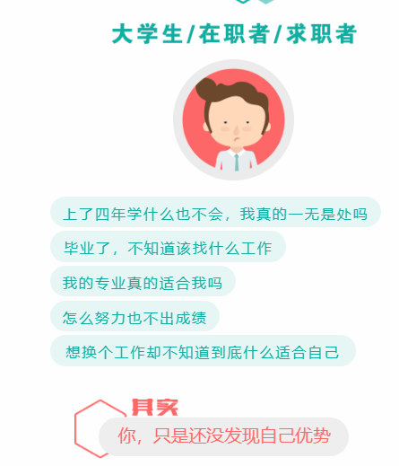 幫你發現自身的優勢,更容易找到適合的工作,發揮優勢,最大限度的體現自身價值,了解自己,理解他人人際關系更和諧。