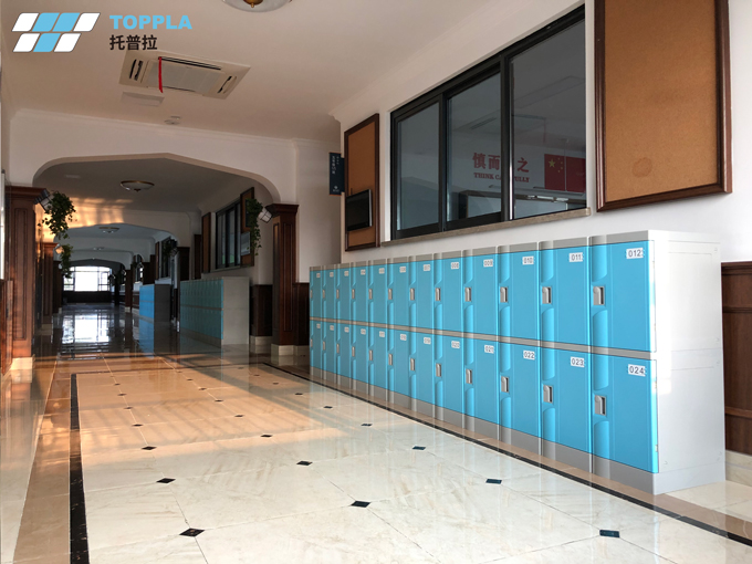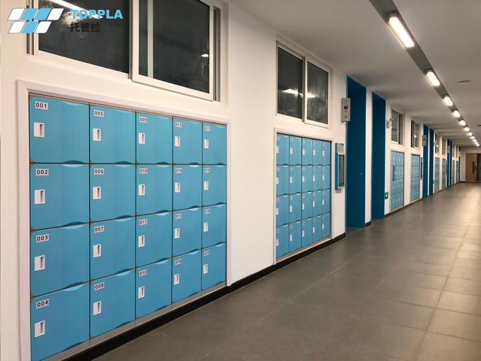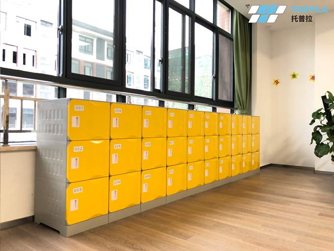 本解決方案使用場景為校園小學(xué)部,選取了托普拉第一代全塑儲物柜淺藍(lán)色T-320S作為書包柜使用。考慮到孩子身高以及教室窗戶等因素,以2門一列、多列組合使用,置于教室外側(cè)走廊,便于小學(xué)生存儲物品。