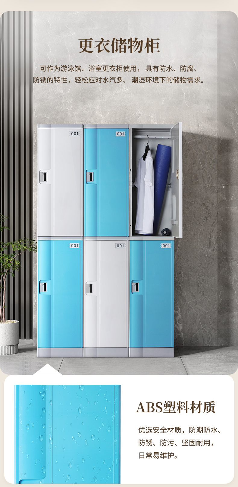 學校書包柜全塑ABS更衣柜游泳池浴室儲物柜