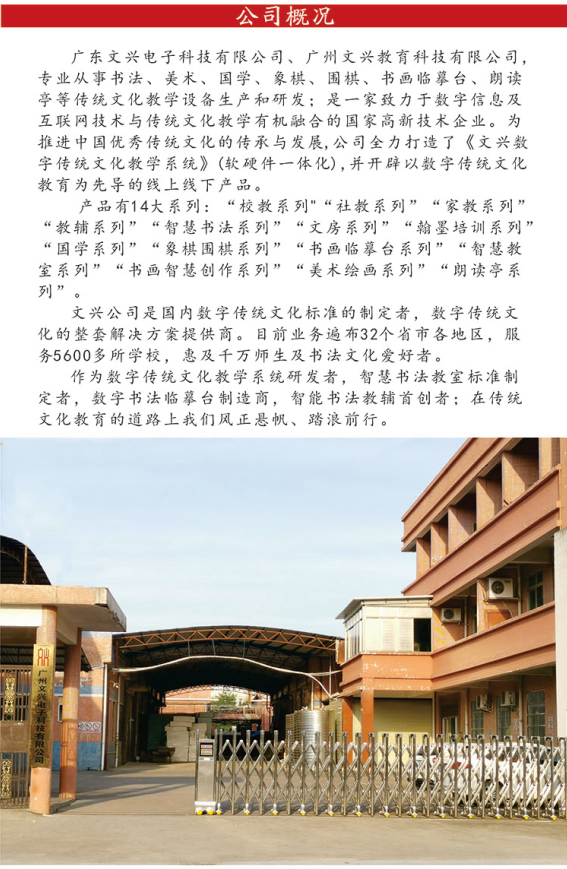 | 智慧書法教室;國學教室;書畫創新教室;數字書法教學系統;書法臨摹臺;書畫臺;書法體驗臺;數字美術教室;象棋教室;圍棋教室;國際象棋;沙畫教室; |