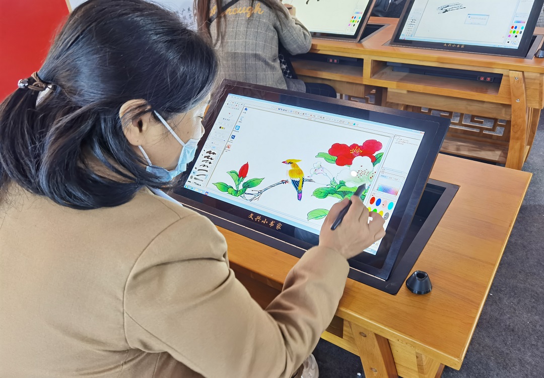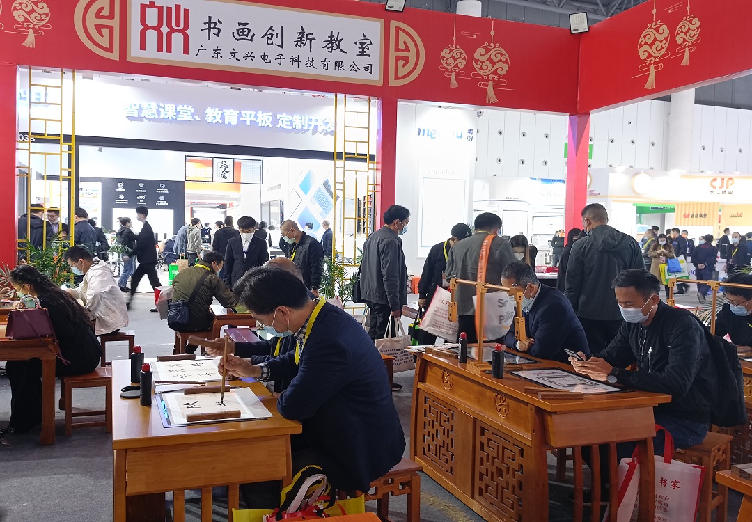 文興現場展示產品有:數字化美術教室、智慧書法教室、數字棋藝教室,沙畫教室,書畫臺等前沿產品
