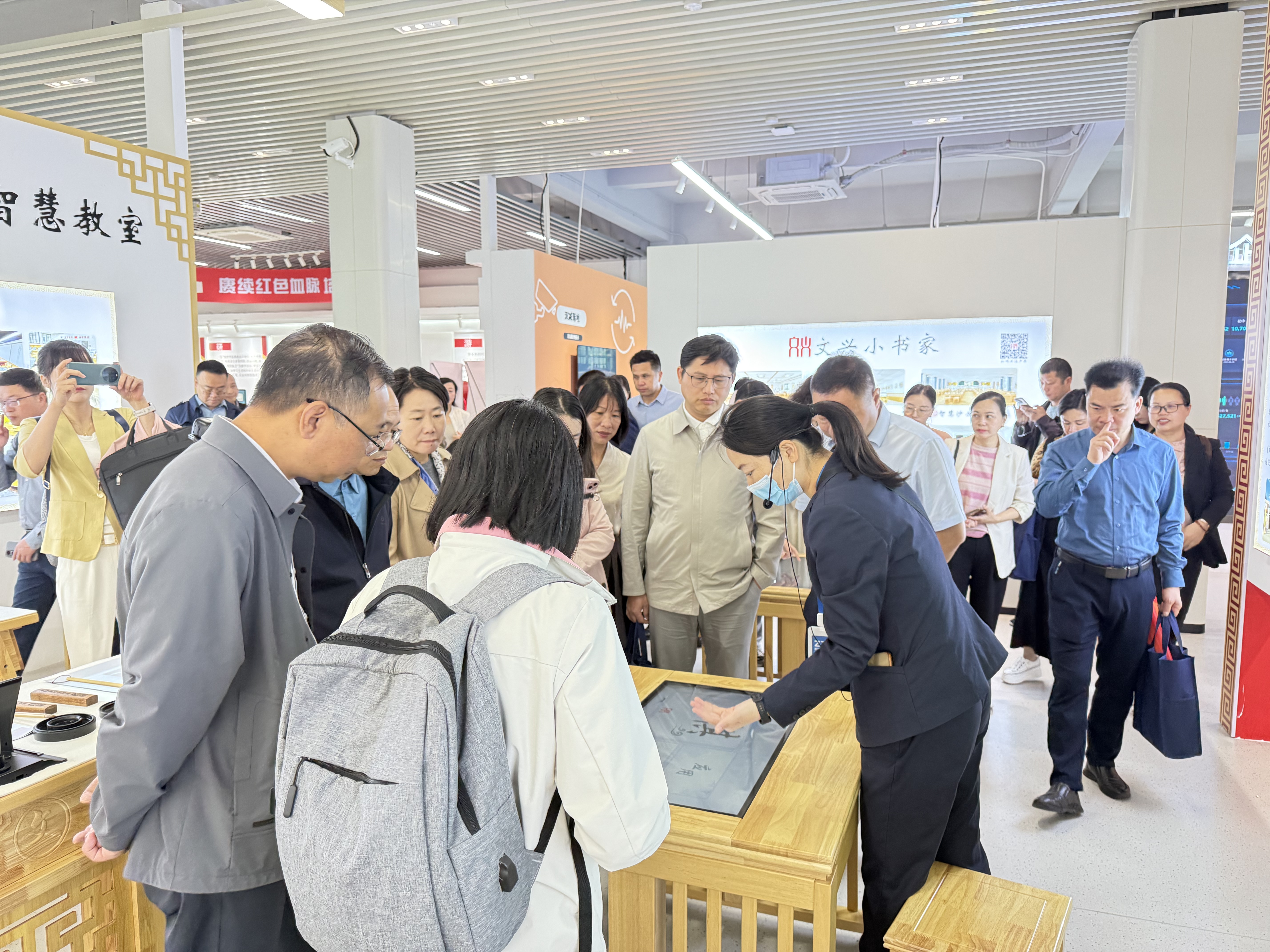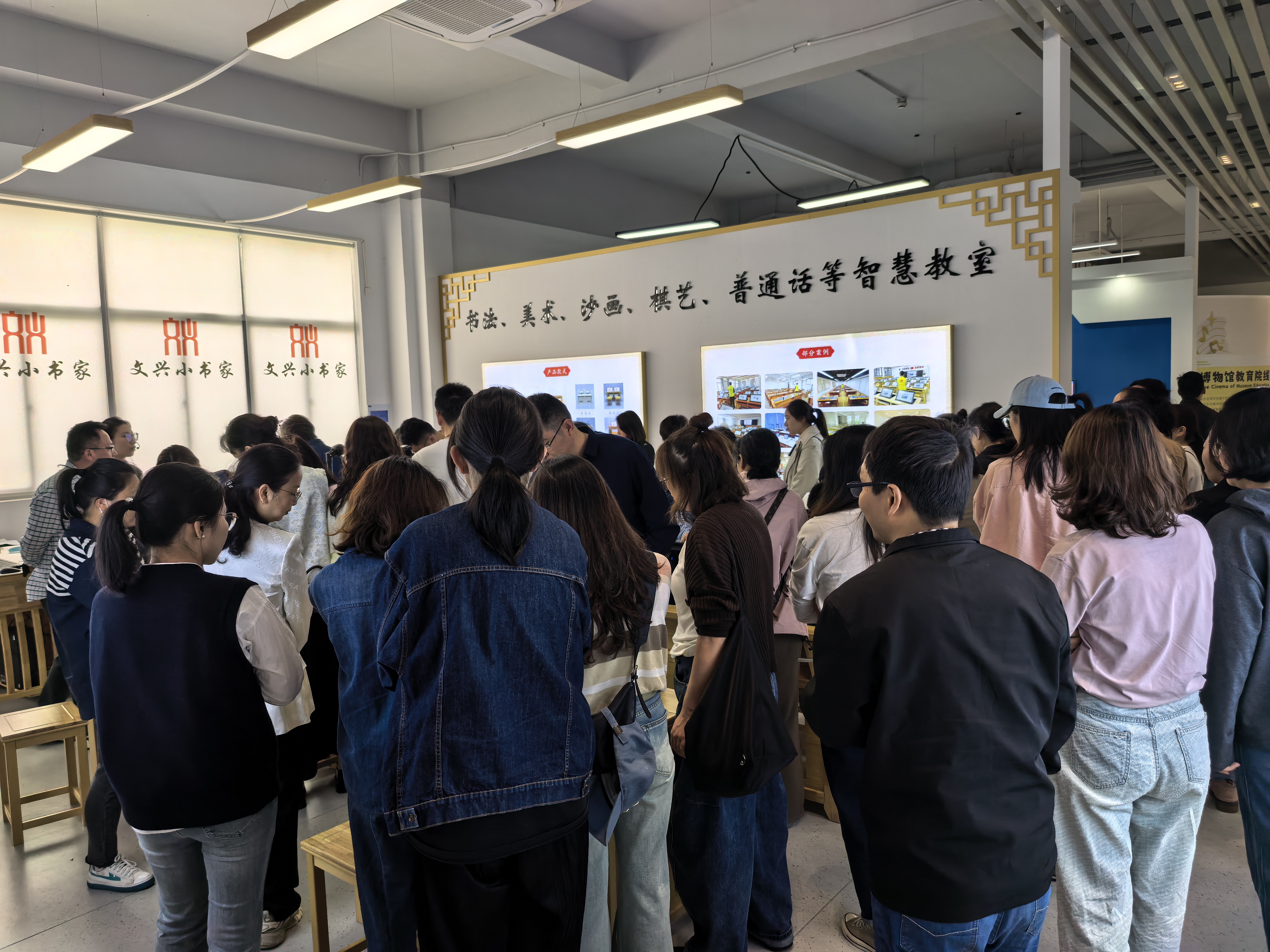 2025年4月27日,江西省教育廳2025年度國培計劃“雙名工作室培訓”項目——“名師名校長工作室”骨干成員培訓班一行蒞臨文興小書家,開展了一場關于數字化文化教育的深度考察與交流活動。此次培訓班的到訪,旨在通過實地觀摩與研討,探索新時代背景下,如何借助數字化技術推動傳統文化教育的創新發展,為江西省教育事業注入新活力。