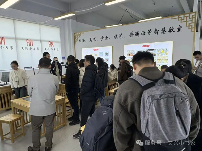 2025年11月26日,成都市教師素質提升直屬學校干部培訓班一行蒞臨文興小書家產品展示中心,開展教育裝備現代化專題考察活動。培訓班教師團隊深入了解了文興小書家在智慧美術、書法、沙畫、棋藝教學等領域的智能化教學解決方案,并對產品的技術集成性、教學適配性與創新應用價值給予了高度評價。