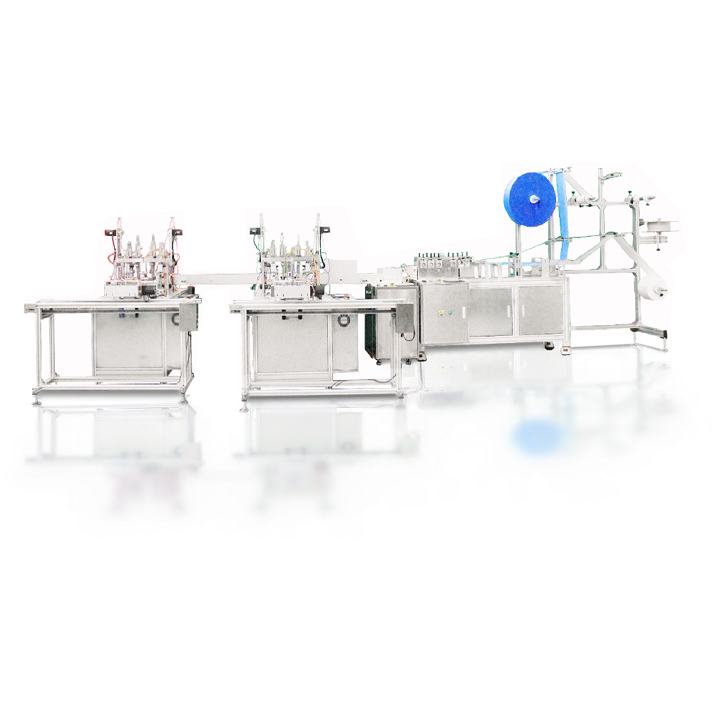 SAOL-03/12全自動(dòng)口罩機(jī)為我司為抗擊疫情,集中技術(shù)力量進(jìn)行攻關(guān),而研制的全自動(dòng)口罩生產(chǎn)線,可生產(chǎn)一次性多層平面口罩。生產(chǎn)線采用一拖二集成方案(1臺(tái)自動(dòng)打片機(jī)+2臺(tái)耳線焊接機(jī)),使用電腦PLC編程控制,實(shí)現(xiàn)了原材料自動(dòng)放卷、自動(dòng)輸送、切斷鼻梁條、口罩邊緣焊接、超音波融合、成型切斷、耳線焊接等全制程自動(dòng)化,24小時(shí)滿負(fù)荷產(chǎn)能最高可以達(dá)到12萬只/每天。 全自動(dòng)口罩機(jī)是由一臺(tái)主機(jī)加兩臺(tái)耳帶焊接機(jī),通過一條一分二的傳送線連線而成。每臺(tái)設(shè)備僅需一名操作人員,即可實(shí)現(xiàn)從卷料上料、折疊壓合成型及分切、耳帶上料機(jī)焊接、下料的全自動(dòng)生產(chǎn)過程,大大提高了生產(chǎn)效率。