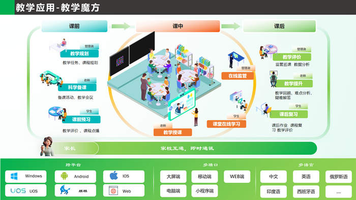 現(xiàn)場(chǎng),安道除了展出了新的智慧教學(xué)設(shè)備外,還亮相了新的自研智慧教學(xué)應(yīng)用軟件「安道教學(xué)魔方」。教師在使用教學(xué)魔方時(shí),可以借助AI實(shí)現(xiàn)一鍵快速備課,生成課件,還支持生成跨學(xué)科內(nèi)容。作為高效賦能教學(xué)的多功能教學(xué)軟件,教學(xué)魔方為管理者、教師、學(xué)生、家長(zhǎng)多用戶提供電腦端、移動(dòng)端、小程序、網(wǎng)頁(yè)等多終端提供全面的教學(xué)輔助平臺(tái),能夠結(jié)合其他自研教學(xué)工具,貫穿課前、課中、課后三大教學(xué)環(huán)境全流程,豐富教學(xué)功能和模塊,靈活組合,實(shí)現(xiàn)個(gè)性化課堂教學(xué)設(shè)計(jì)及信息資源流通共享,進(jìn)一步提高教學(xué)質(zhì)量。