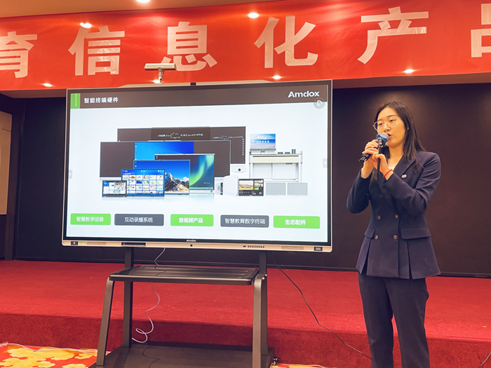 安道教育講師韓夢(mèng)思通過產(chǎn)品講解和案例展示,向參會(huì)人員展示了安道新的全場(chǎng)景智慧教室解決方案和應(yīng)用場(chǎng)景。