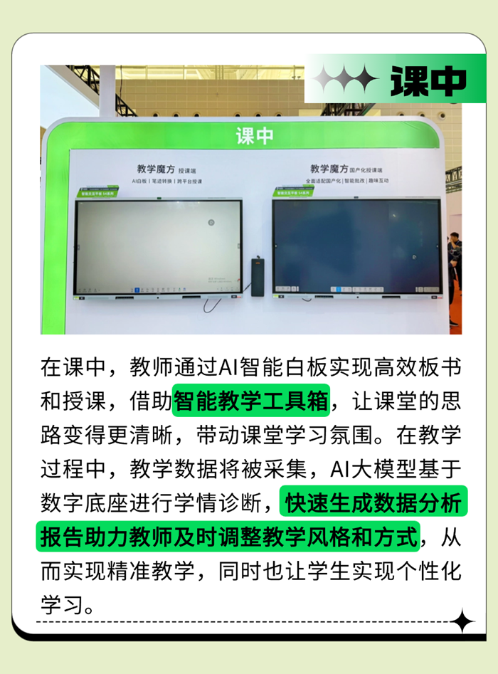 在精準(zhǔn)教學(xué)區(qū)域,最新迭代的智慧教學(xué)應(yīng)用軟件「安道教學(xué)魔方」亮相現(xiàn)場(chǎng)。作為多功能教學(xué)工具,貫穿「課前」「課中」「課后」全過(guò)程,在備授課場(chǎng)景上實(shí)現(xiàn)了新突破。