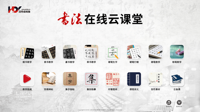 江蘇漢丹云教育科技有限公司是一家深耕數字化教育領域的高新技術企業,專注于教育云平臺建設與大數據應用,持續推進傳統文化與信息技術的融合創新。圍繞中小學書法教學實際需求,公司構建起覆蓋課程、資源與課堂應用的智慧書法產品體系,致力于提升書法教學的規范性、普及性與教學效率。