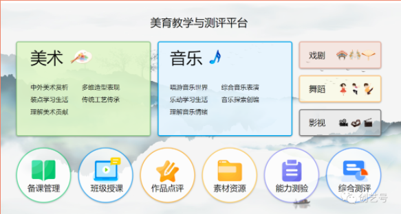 創藝號三大課程體系輔助以整體智慧美育教學平臺,從教師的日常教學所需出發,為教師便捷高效開展課程、采集學生作品、多維多元評價提供技術保障,致力于服務美育進中考工作的落實與推進。