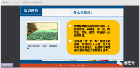 常規課程:基于知識建構理論,構造美育創新教學三步法:知識建構、思維拓展和創意實踐。知識建構:提取教材中的知識點,通過生活場景引入,搭建起學生新舊知識的橋梁,實現新知識的建構。配合引導性提問,帶動學生主動獲取課程的知識。其中包括美術知識、美術技法、藝術流派、名人名作、創作特點等。