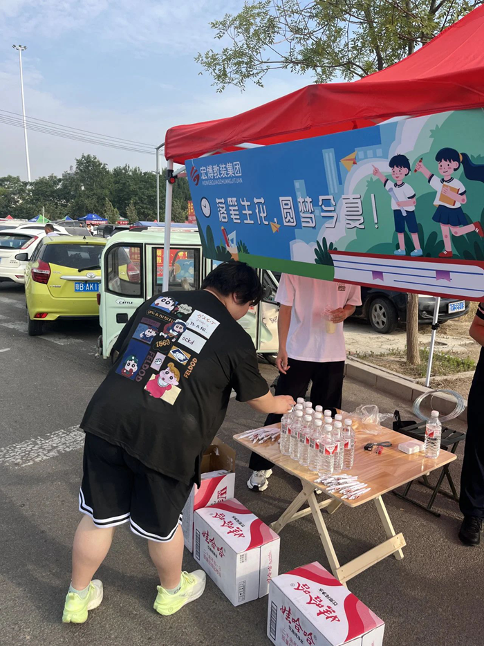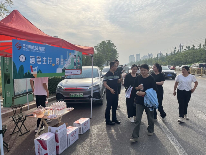 高考期間,齊魯宏博積極響應社會號召,在鄄城一中考點外精心搭建了愛心服務棚。棚內整齊擺放著清涼解渴的飲用水和書寫流暢的中性筆,為考生和家長們送去了貼心的關懷。
