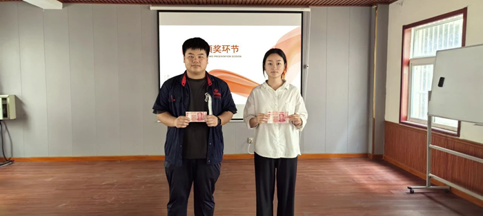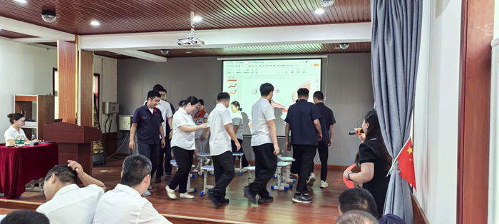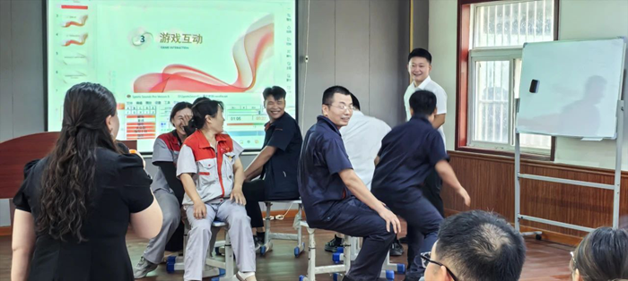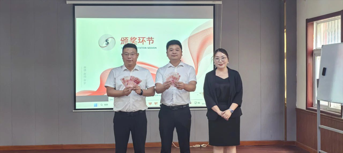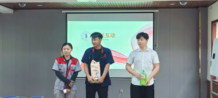 隨后的搶凳子游戲將現場氣氛推向高潮。12名來自各部門的參賽選手圍著10張凳子緊張角逐,音樂停頓時選手們爭相落座的場景引得全場笑聲不斷。最終,來自工程部的趙起憑借敏捷的反應力摘得“搶凳王”桂冠,贏得陣陣喝彩,采購部黃振偉和倉儲部葉燕紅分獲亞軍、季軍,現場掌聲雷動!
