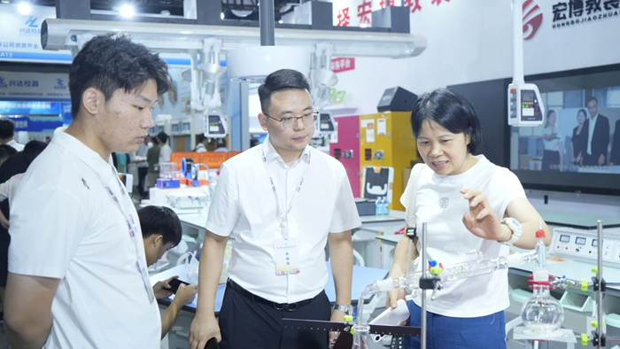 在這片沸騰的教育科技熱土中,齊魯宏博教育裝備集團(A06-1展位)憑借“智能實驗室+創新化儀器”的全場景解決方案,成為全場人氣焦點。展位前始終排起體驗長龍:化學吊裝實驗室的模塊化設計引得觀眾們駐足討論;歡呼聲此起彼伏,咨詢聲不絕于耳。