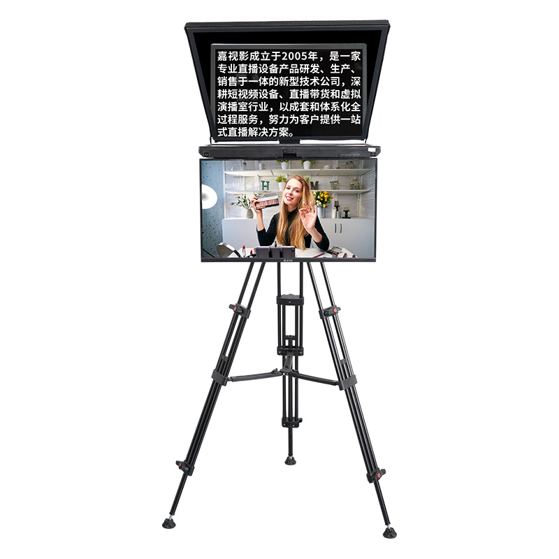 產品詳細介紹24寸雙屏提詞器,尺寸更大,提詞更清晰,支持微單,單反攝像機拍攝,使用方式,支持pc電腦 ,手機,ipad控制提詞,支持安卓版本智能語音控制提詞,支持多種語言, 支持pc電腦 win系統,xp系統,mac系統提詞,多種提詞方式,錄播直播更享受!嘉視影大型提詞器具有自己研發功能,提詞器顯示器可以按鍵調整鏡像功能,方便使用ppt 無需在用軟件鏡像,觀感更好!雙屏增加自檢屏,這個屏幕可以連接攝像機,主持人可以看到自己來隨時調整自己的狀態,同時這個屏也可以豎著裝,來連接導播臺 或者直播畫面,可以用于直播,看到直播評論和直播畫面!