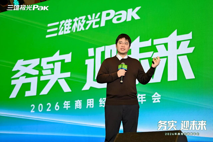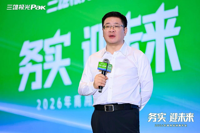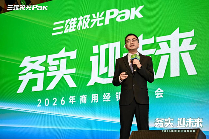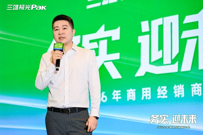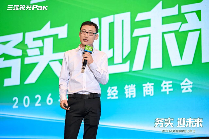 隨后,總裁林巖發(fā)表了題為《以務(wù)實(shí)筑基,邁向價(jià)值共生》的核心致辭。他首先深情感謝了所有經(jīng)銷商伙伴在過(guò)去一年風(fēng)雨同舟的堅(jiān)定選擇和銷售團(tuán)隊(duì)的奮力拼搏。林巖總裁明確指出,正是共同秉持的 “務(wù)實(shí)” 精神,讓三雄極光在充滿挑戰(zhàn)的2025年守住了基本盤,并在多個(gè)領(lǐng)域?qū)崿F(xiàn)了關(guān)鍵突破。