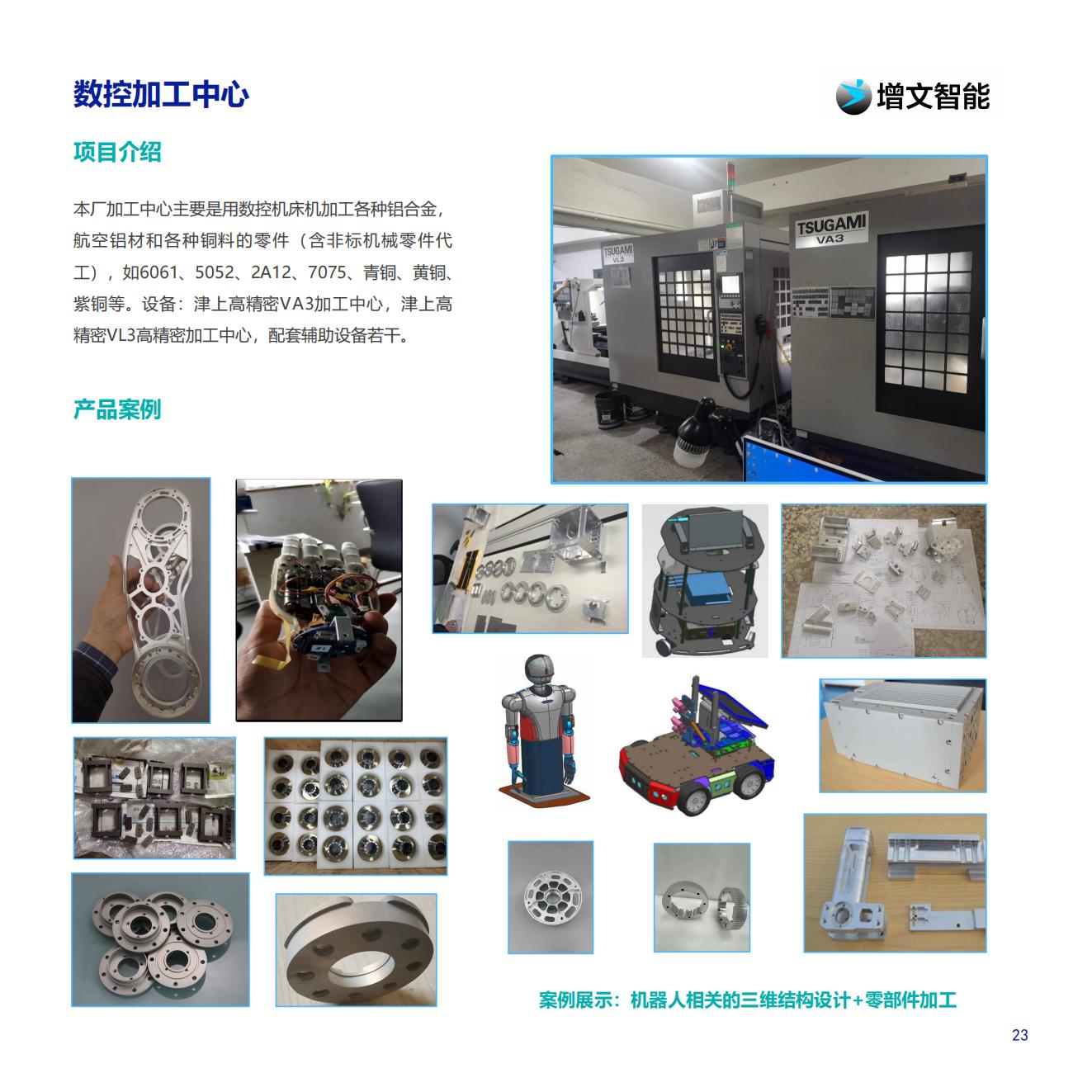 工),如6061、5052、2A12、7075、青銅、黃銅、紫銅等。典型案例有:機器人連接件,法蘭,電機減速器,靈巧手結構以及外觀設計,其他零部件等,主要設備有:津上高精密VA3加工中心,津上高精密VL3高精密加工中心,配套輔助設備若干等等。