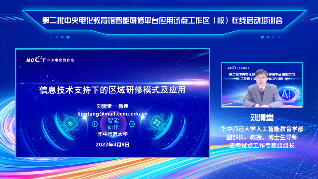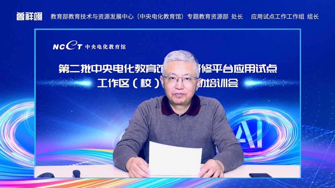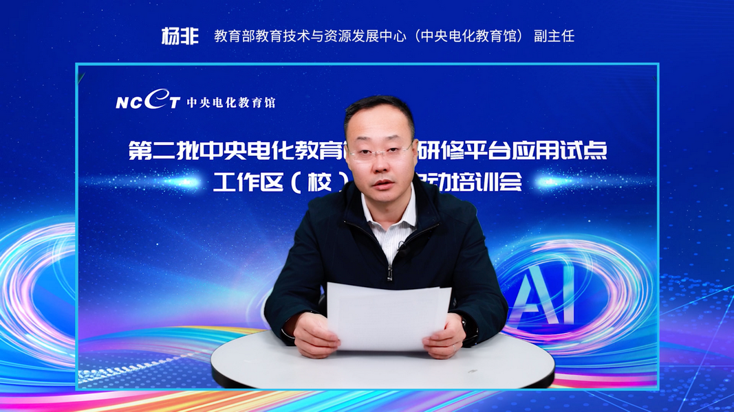 教育部教育技術(shù)與資源發(fā)展中心(中央電化教育館)副主任楊非在開幕式致辭。楊主任總結(jié)了2021年應(yīng)用試點(diǎn)工作成果,并對(duì)2022年試點(diǎn)工作提出要求。