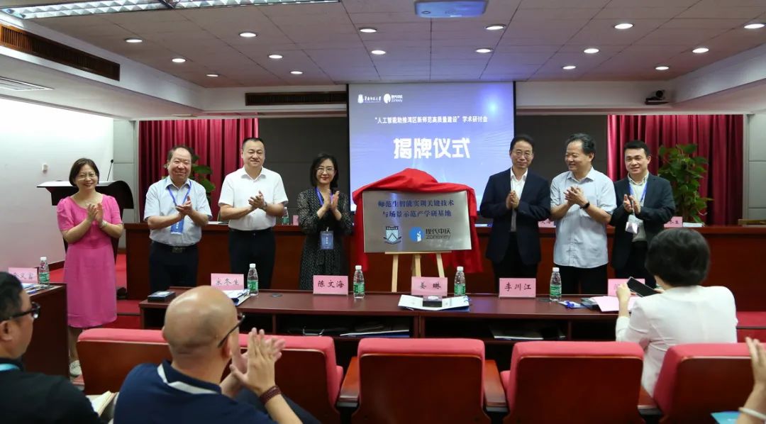 近日,由華南師范大學、廣東省本科高校“新師范”建設指導委員會共同主辦的“人工智能助推灣區新師范高質量建設”學術研討會,在華南師大召開。會上華南師大教育人工智能研究院與現代中慶聯合共建的“師范生智能實訓關鍵技術與場景示范產學研基地”正式揭牌。