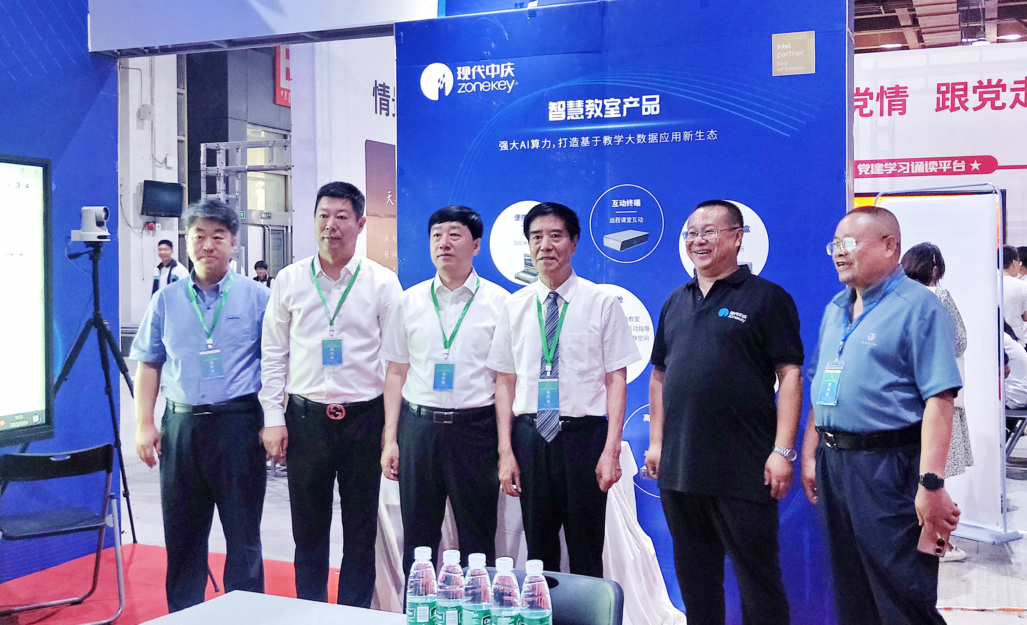 教育部關心下一代工作委員會常務副主任、中國教育裝備行業(yè)協(xié)會專家委員會主任王富等領導蒞臨現代中慶展位參觀并合影。