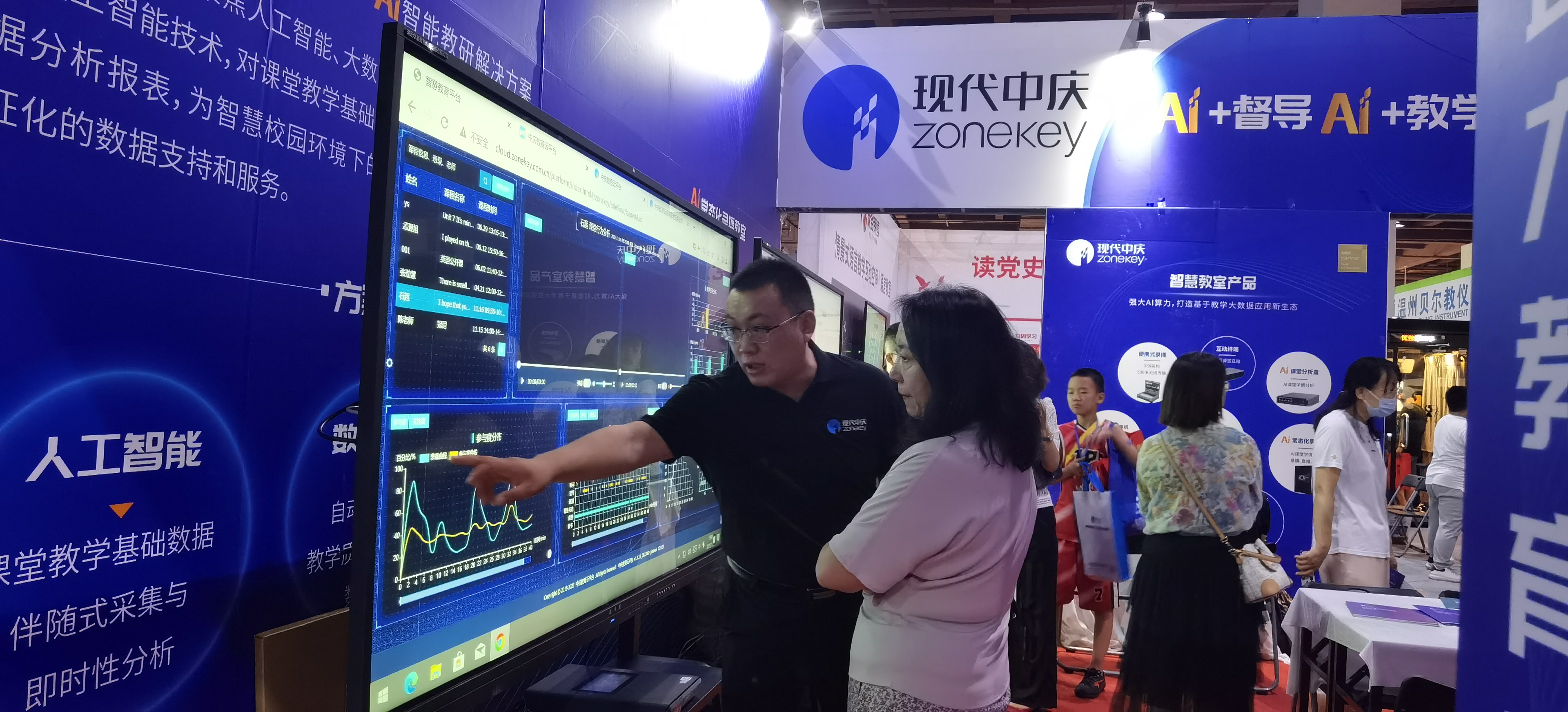 教育高質量發(fā)展的關鍵在課堂,核心是教師。在當前教育數字化轉型中,新技術支持教師專業(yè)發(fā)展是一個重要的方向。現代中慶重點展示的AI教研解決方案就提供了一個AI賦能教師成長的創(chuàng)新應用,在中慶常態(tài)化錄播教室中,AI自動采集和分析課堂基礎數據,并形成課堂教學行為數據報告,平臺同時支持備、磨、聽、評、賽等全流程的AI數據服務,為新技術支持下的教師自我反思、教研活動開展、科學教學管理提供了精準的數據支撐。