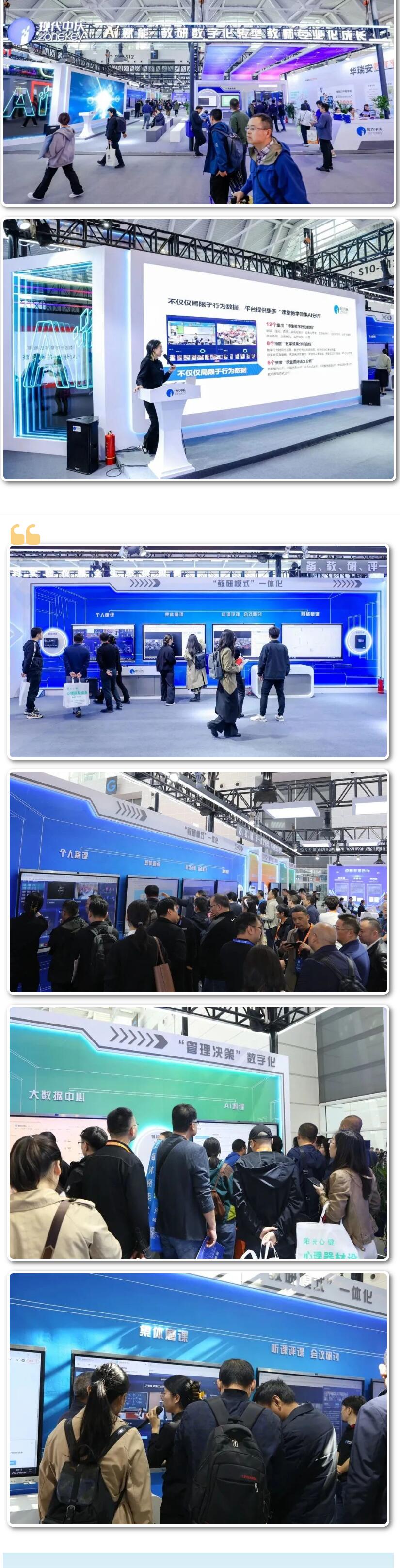 現(xiàn)代中慶秉持“技術(shù)賦能教育創(chuàng)新,智能引領(lǐng)教育未來(lái)”的理念,圍繞“AI賦能 教研數(shù)字化轉(zhuǎn)型 教師專業(yè)化成長(zhǎng)”這一主題,在展會(huì)中全面呈現(xiàn)“主觀經(jīng)驗(yàn)式”向“實(shí)證精準(zhǔn)式”轉(zhuǎn)型的思維方式與智能教研解決方案。