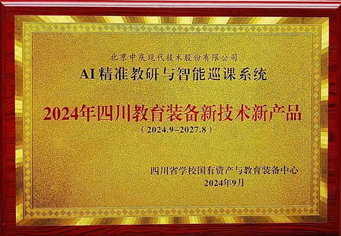 現代中慶基于人工智能新一代信息技術的三款產品(AI精準教研與智能巡課系統、中央電化教育館智能研修平臺、智課終端D6100)成功入選四川教育裝備新技術新產品名單。