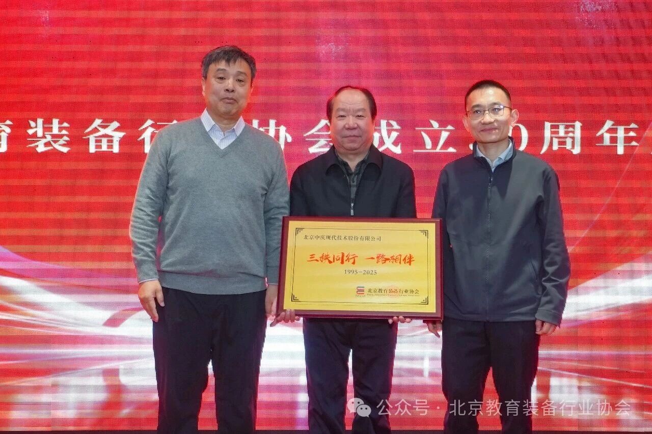 近日,在北京教育裝備行業(yè)協(xié)會(huì)成立三十周年座談會(huì)上,一段跨越三十年的產(chǎn)學(xué)研合作佳話迎來了高光時(shí)刻。協(xié)會(huì)特別向長(zhǎng)期以來的重要合作伙伴與會(huì)員單位——北京中慶現(xiàn)代技術(shù)有限公司(以下簡(jiǎn)稱“現(xiàn)代中慶”)頒發(fā)了題為“三秩同行 一路相伴”的榮譽(yù)紀(jì)念牌,以此表彰現(xiàn)代中慶自1995年協(xié)會(huì)成立之初便加入,三十年來與中國(guó)教育風(fēng)雨同舟、共同成長(zhǎng)的深厚情誼。