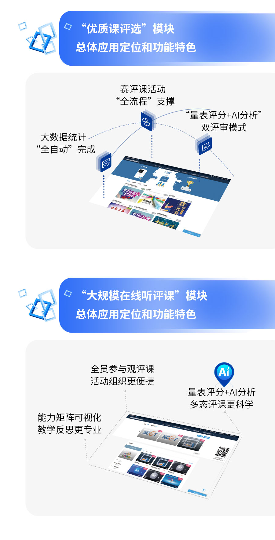 AI教研應用、錄播系統、智慧教室、“三個課堂”解決方案等