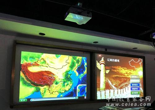 地理是一門探索地理現(xiàn)象、地理事物以及人與自然和諧關系的學科,涉及的內容多、廣,在傳統(tǒng)教學中依靠口述講解,無法講明有關的地理現(xiàn)象和事物運動變化情況,學生也無法深入理解有關地理知識和規(guī)律。而環(huán)幕示教系統(tǒng)在實際授課中通過視頻影像來動態(tài)展示地理現(xiàn)象和事物的發(fā)展過程,從而使學生深刻了解和把握事物現(xiàn)象之間的聯(lián)系性。如在講解“地勢地形”部分知識的時候,教師可以將數(shù)字立體地形導入到課堂中,通過眼觀、手觸立體地形就能知道各省地貌,如江浙滬長江三角洲多為平原;貴州多為高原等。當教師通過手中的控制筆點擊模型或白板上的按鈕播放PPT,學生們便能直觀了解世界各大洲地形,山脈河流概況以及全球、中國主要氣候類型的分布地區(qū)等。