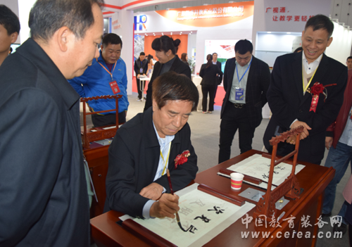 中國教育裝備行業(yè)協(xié)會會長王富現(xiàn)場體驗智慧書法教室產(chǎn)品