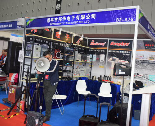 本屆展覽會,恩平市邦華電子有限公司攜多功能手提式無線擴音機、多功能流動式擴音機、專業無線麥克風系列等產品亮相。