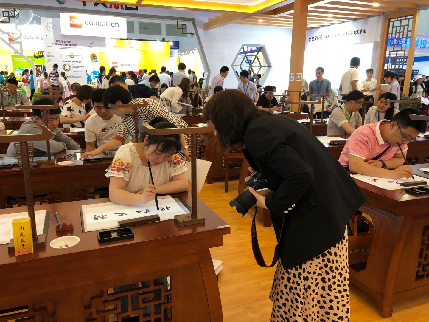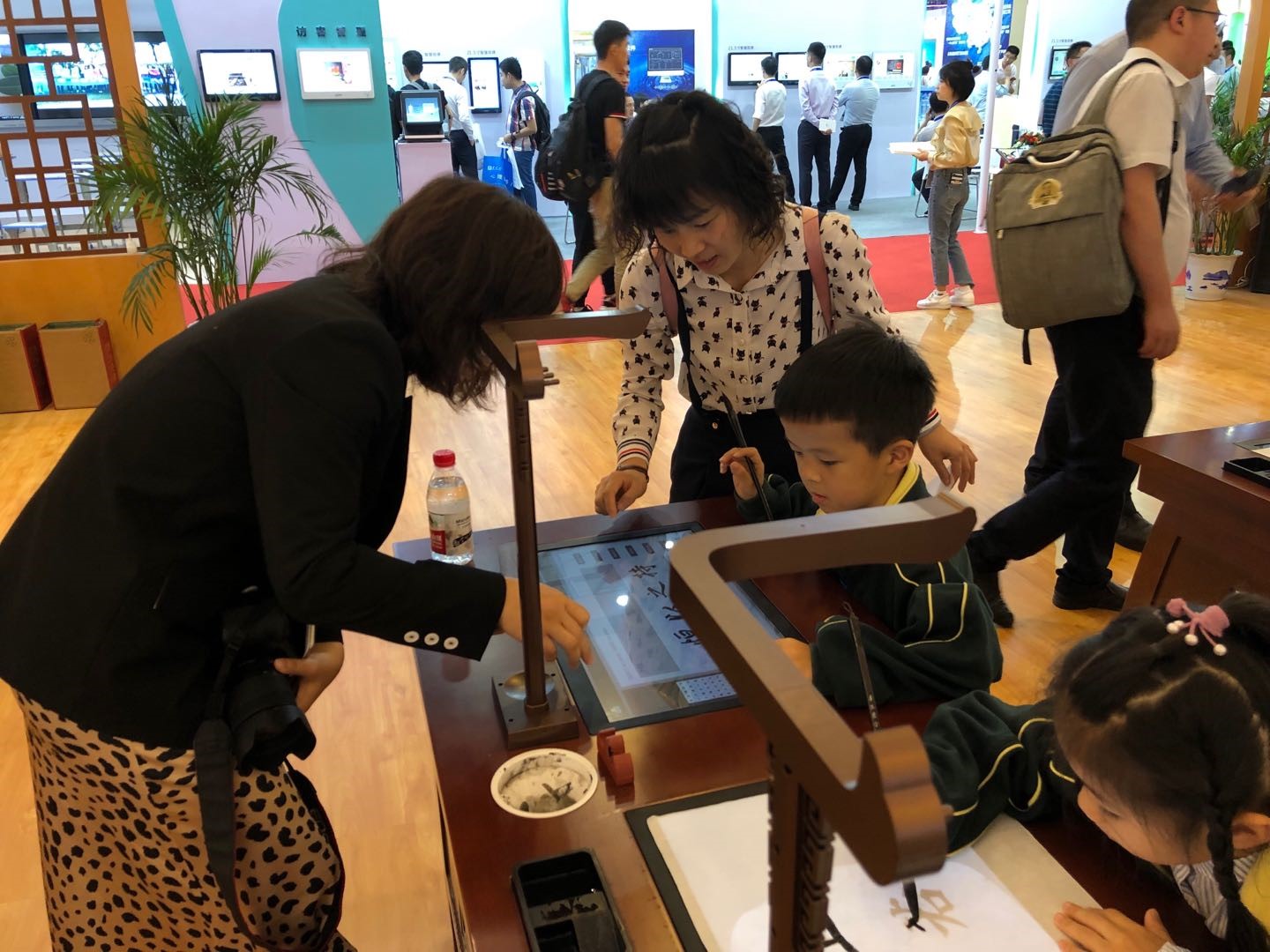 記者了解到,該公司此次展出的是華文眾合第五代智慧書法教室,其產品的研發以提升書法教學水平為出發點。在此次展會上推出了新的軟硬件“智能課程平臺”和“興趣體驗式學習軟件” ,前者包括從內置資源示范到學生動手體驗再到知識擴展和原帖欣賞等模塊,后者包括識字體、拼字體等體驗學習方式,二者結合可讓學生更加了解各類字體的特點,更能欣賞不同字體的美感,進一步提升書法教學效率的同時更多地提升學生學習書法的興趣。