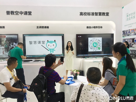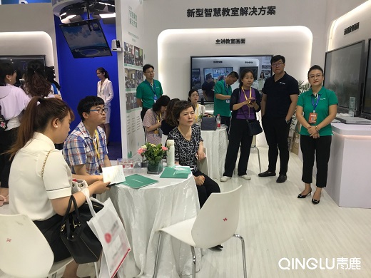 青鹿作為智慧教育信息化整體解決方案提供商參加了本次博覽會(展位B4館A008),青鹿空中智慧課堂解決方案重磅亮相,受到眾多參展觀眾的關注。博覽會開始不久,青鹿展位前就聚集了大量觀眾圍觀,其中不少觀眾使用自己的手機連入課堂,親身體驗了一次智慧課堂。