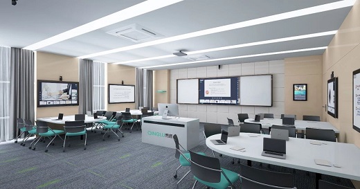 青鹿高校智慧教室解決方案可支撐多種新型教學模式,助力學校高效構建新型教與學空間。 在青鹿搭建的新型教與學空間里,可實現多屏協作互動(10個小組)、錄播音視頻融合、遠程互動直播和物聯網環境管控,具有教師授課穩定化、課堂互動多終端化、分組教學高效化、教學場景錄制自動化、遠程教學有序化和教室環境管控一鍵化的特點。