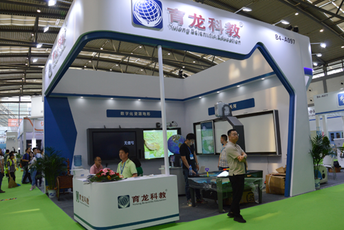 本次博覽會,育龍科教攜多媒體球幕投影系統、數字沙盤、數字化資源地形等產品亮相現場。