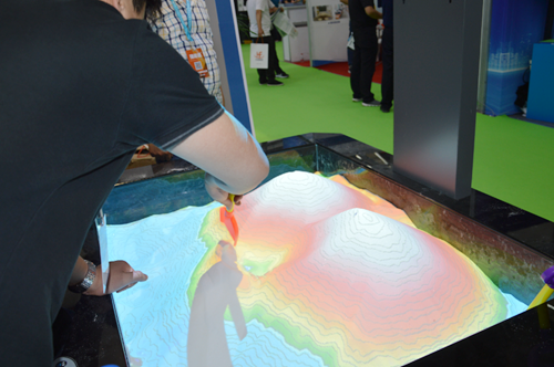 數字化投影沙盤采用變互傳感器,互動精準。超短焦投影機,通過數字光處理技術將圖像投射到沙盤內,投影更加靚麗、清晰;數字化投影沙盤現階段主要有基于等高線的水流模式、熔巖模式、雪景模式。
